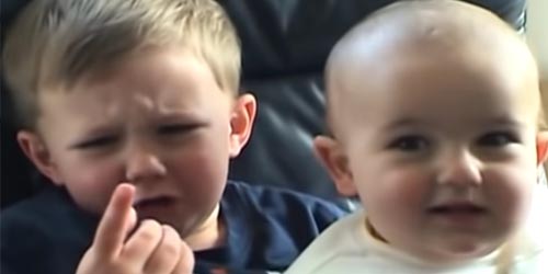 மூத்த சகோதரனான ஹாரி தன் தம்பி சார்லியின் தோள் மீது கைபோட்டபடி அமர்ந்திருப்பான். அண்ணனின் விரல்களை தன் வாயில் வைத்து சார்லி சந்தோஷமாக கடிப்பான்.