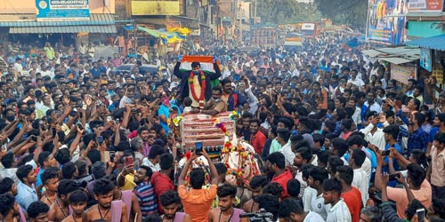 இதனையடுத்து, கிரிக்கெட் வீரர் நடராஜனுக்கு தேசியக் கொடியைப் போர்த்தி, மாலை அணிவித்து ஊர் மக்கள் பாராட்டுதல்களைத் தெரிவித்தனர்.
