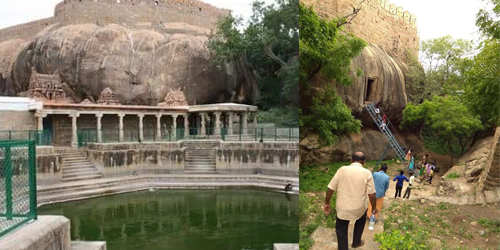 இக்குன்றின் தெற்குச் சரிவில் அதி அற்புதமான கலைக் கோவிலாக "சத்தியகிரீஸ்வரம்' எனும் சிவன் கோவில் அமைந்துள்ளது. இது ஒரு குடைவரைக் கோவில்.